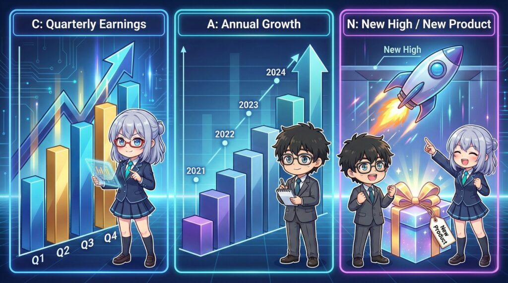 【オニール流】CAN-SLIM完全解説|「安い株を買うな」が成長株投資の鉄則【AI投資】