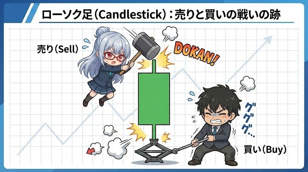 へぇー! ただの四角と棒だと思ってたけど、そう考えると『戦場の最前線』に見えてくるな。 ヒゲが長いローソク足を見たら『激戦だったんだな…』って思えばいいのか。