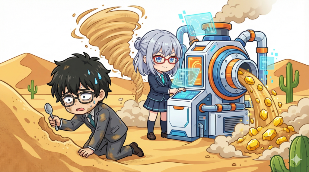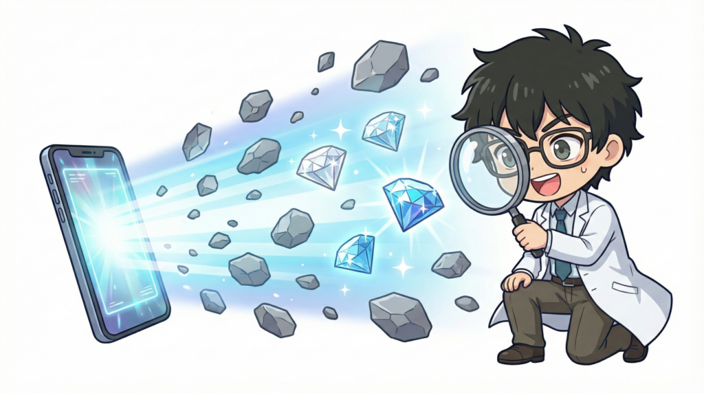 それは昭和の価値観です。現代の賢い投資家は、砂漠の砂をスプーンですくうような真似はしません。巨大な振るい(スクリーニング)にかけて、一瞬で「砂金」だけを残すのです。今日は、四季報を1ページも開かずに「大化け株(テンバガー)候補」を3分で抽出する裏技を伝授します。